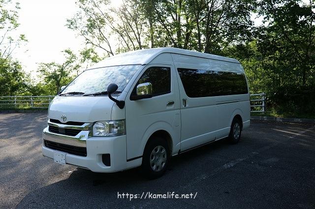 今回わたしが運転した車両はハイエースグランドキャビン。寸法上では普通のハイエースよりも全長が約50cm、高さが20cm程度増えただけなんだけど、いざ目の前で見ると数値よりもずっと大きく見えます。重いし、風が強い時はめっちゃ左右に振られるし、当然なんだけど運転していて全く楽しい車では全くありません。